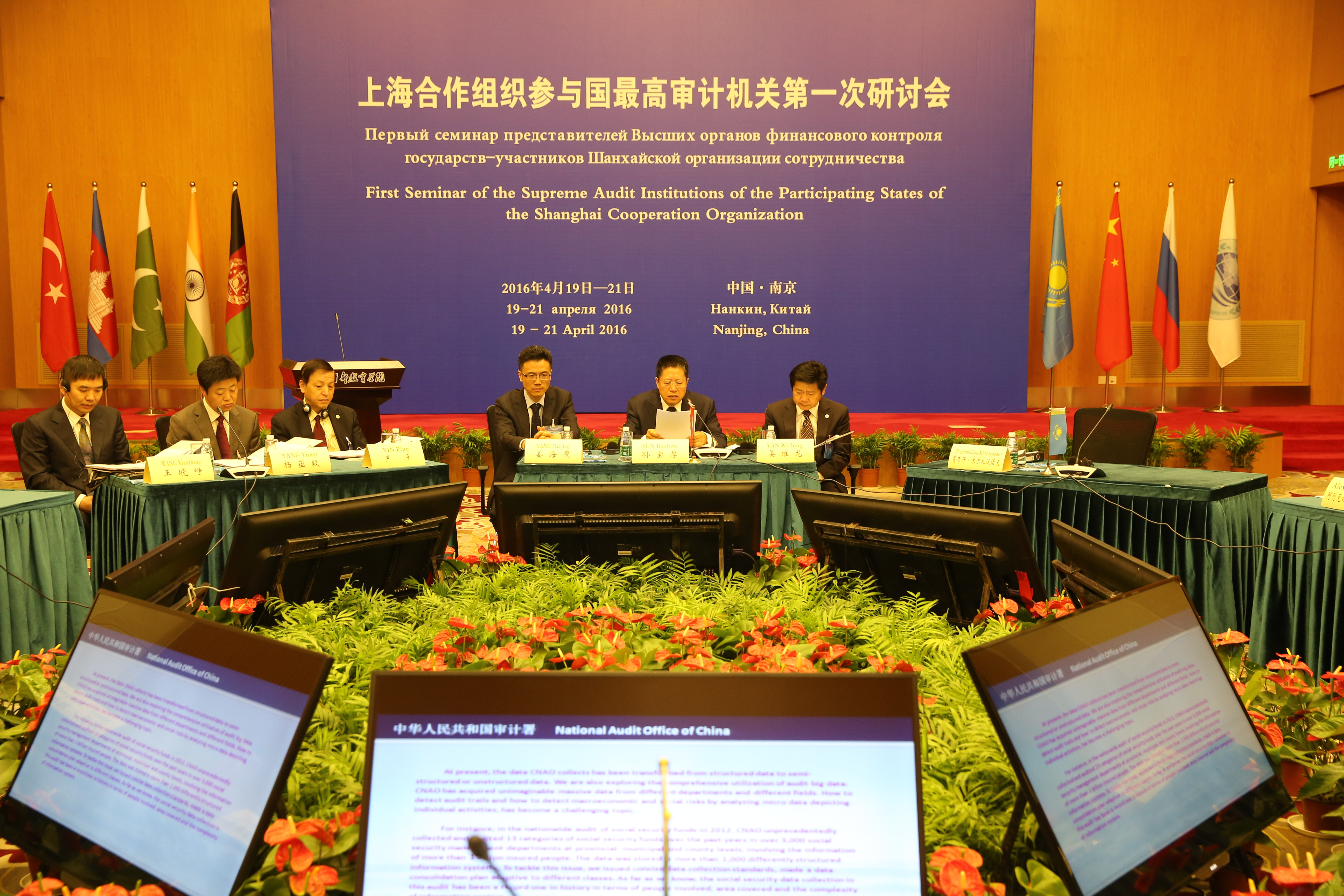 On April 19-21, 2016, the First Seminar of the Supreme Audit Institutions of the participating states of Shanghai Cooperation Organization was held at CNAO Audit Academy in Nanjing. 20 representatives from 8 countries and organizations, including China, Kazakhstan, Russia, Afghanistan, India, Pakistan, Cambodia, Turkey and SCO secretariat, participated in this seminar. Dr. Sun Baohou, Deputy Auditor General of CNAO, attended the opening ceremony and made a keynote speech.