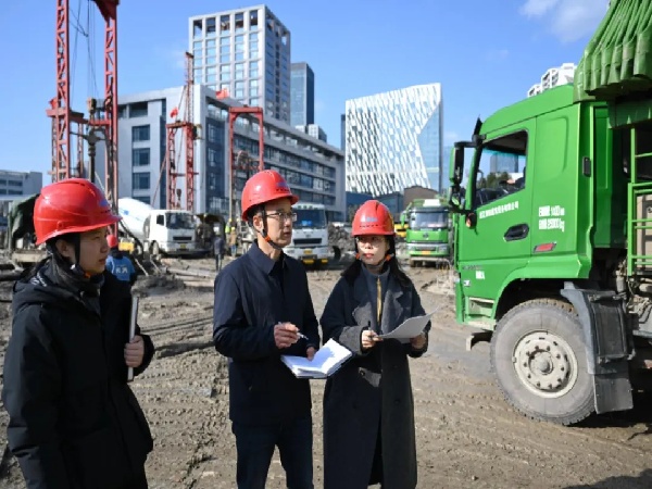 徐國增(中)和同事實(shí)地踏勘建設(shè)工程土方外運(yùn)管理情況