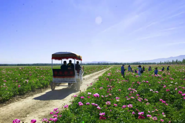 張家港市援疆工作組大力支持當(dāng)?shù)厣鷳B(tài)農(nóng)業(yè)觀光園建設(shè),投入援疆資金,引進(jìn)生物科技公司,種植富芍2500畝,助力打造集芍藥花觀賞、產(chǎn)品體驗、鄉(xiāng)村旅游、休閑觀光、就業(yè)創(chuàng)業(yè)為一體的綜合示范園區(qū),為村民打開增收致富新渠道。