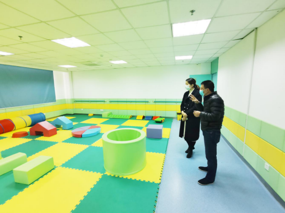 在康復(fù)中心查看兒童康復(fù)器材配備情況