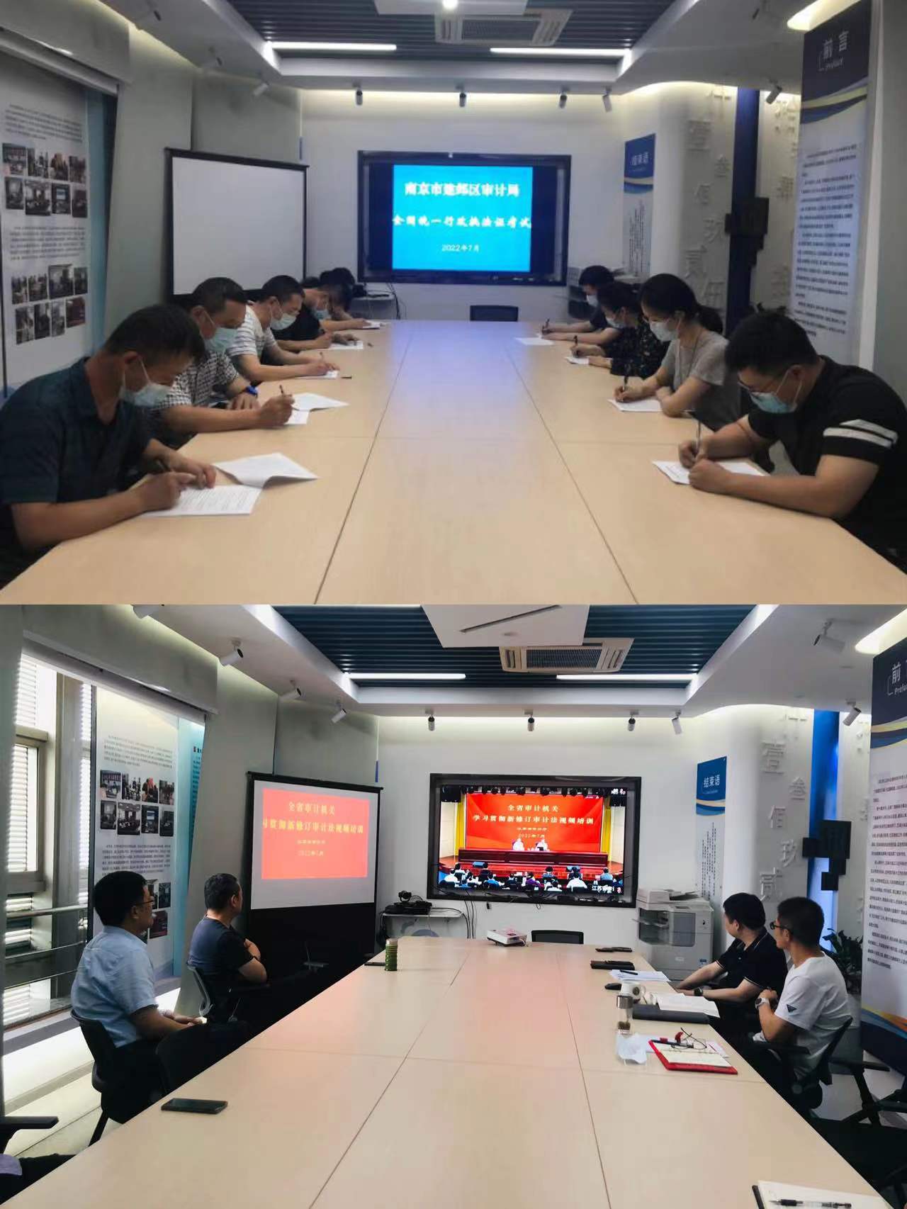 江蘇省南京市建鄴區(qū)審計(jì)局融合應(yīng)知應(yīng)會(huì)法律法規(guī)和新修訂審計(jì)法解讀,運(yùn)用傳統(tǒng)和新型融媒體手段,線上線下相結(jié)合,采取線上自學(xué)、集中授課、抽查考核等方式,提高審計(jì)人員學(xué)法知法懂法守法自覺(jué)性和依法審計(jì)能動(dòng)性。六合區(qū)審計(jì)局組織法律知識(shí)培訓(xùn)及考試,培訓(xùn)采用線上與線下相結(jié)合、自學(xué)與授課相結(jié)合、討論與探究相結(jié)合的方式,共開(kāi)展10場(chǎng),培訓(xùn)近300人次。考試采用模塊考與全盤(pán)考相結(jié)合、課堂考與課后考相結(jié)合、互相提問(wèn)與統(tǒng)一組織相結(jié)合的方式。