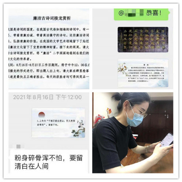 為進(jìn)一步推進(jìn)黨風(fēng)廉政建設(shè),審計(jì)署上海特派辦采用靈活多樣的形式開展廉政文化建設(shè)。近日,審計(jì)署上海特派辦機(jī)關(guān)黨委在辦工作微信群里開展廉政古詩詞接龍賞析解讀,引導(dǎo)全體干部深刻感悟古代賢士們重民生而知根本,畏法度而能自律,明廉恥而守氣節(jié),崇節(jié)儉而重情操,知恩惠而思報(bào)國的情懷。此次活動(dòng),不僅讓全體干部感受到傳統(tǒng)廉政文化的心靈滋養(yǎng),更引導(dǎo)大家牢固樹立廉潔自律意識(shí),強(qiáng)化不想腐的思想自覺,營造風(fēng)清氣正的良好政治生態(tài)。(沈斐)