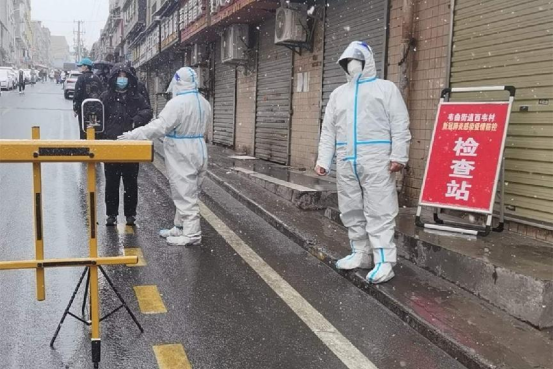 在長(zhǎng)安區(qū)西勘院小區(qū)外,鐵圍欄壘起一道閉合的警戒線。醒目的封控告示牌旁,市審計(jì)局下沉干部袁強(qiáng)和同事們?nèi)珪r(shí)值守,督促物資運(yùn)送人員掃碼測(cè)溫,認(rèn)真查驗(yàn)48小時(shí)核酸檢測(cè)陰性證明,及時(shí)勸離無(wú)關(guān)群眾,牢牢守住防疫體系“最后一公里”。