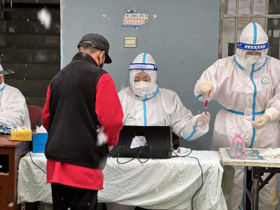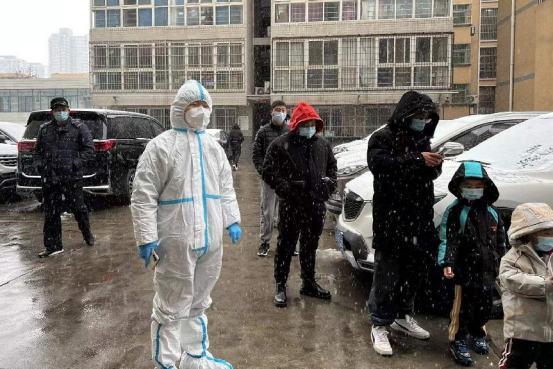 城南,呵氣成霜的深夜又飄起了雪花,一些地點(diǎn)核酸檢測(cè)工作仍在繼續(xù),下沉社區(qū)參與一線防控的市審計(jì)局干部戰(zhàn)“疫”正酣,不敢有絲毫懈怠。他們穿上防護(hù)服忙碌的身影,猶如一盞盞明燈,照亮街道社區(qū),為這個(gè)特殊的冬日平添一份溫暖與安寧。(胡辰)