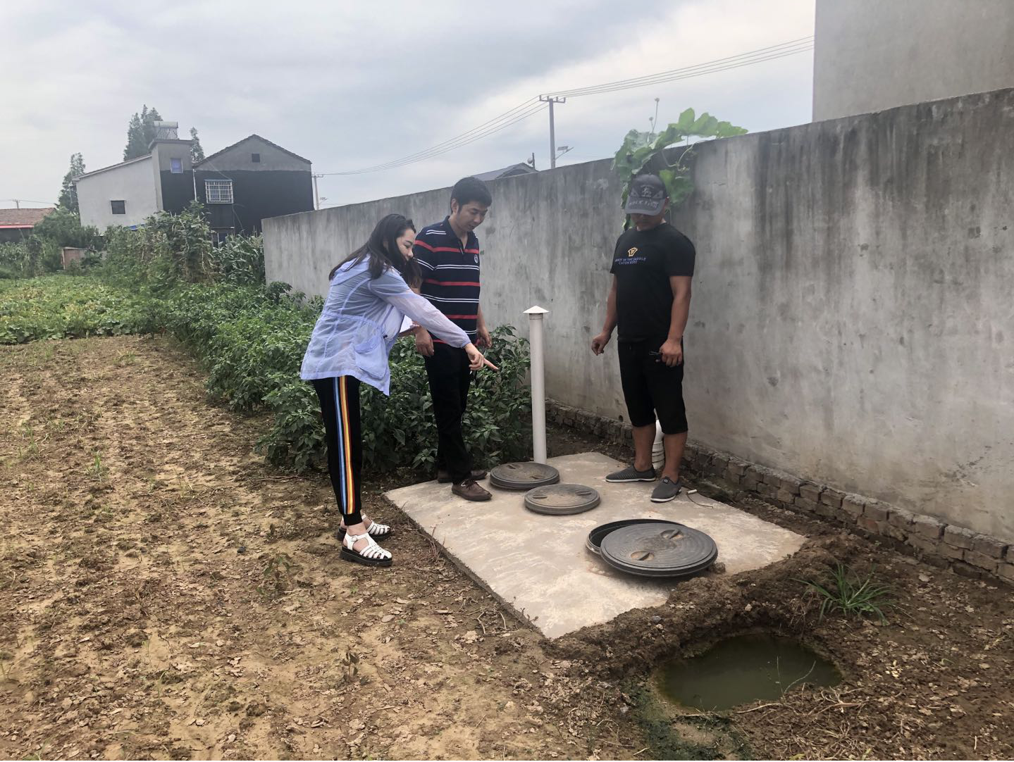 田野里,她們認(rèn)真查看農(nóng)村污水管網(wǎng)處理情況,助力美麗鄉(xiāng)村建設(shè)。