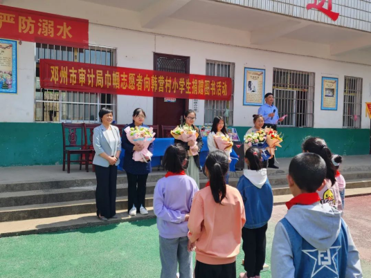 鄧州市審計(jì)局志愿者前往杏山旅游管理區(qū)韓營(yíng)小學(xué),看望留守的兒童,并與他們一起開(kāi)展讀書(shū)分享、合唱同一首歌活動(dòng)。志愿者們?yōu)槔蠋焸兯蜕狭嗣利惖孽r花,對(duì)她們辛勤的付出致以真誠(chéng)的感謝和敬意,同時(shí)向同學(xué)們分享了《親親我的媽媽》《母親》等多部以母愛(ài)為主題的文學(xué)作品。