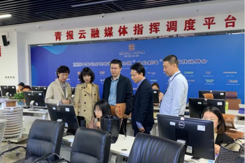 圖為審計(jì)人員查看青島制造品牌宣傳活動(dòng)情況現(xiàn)場(chǎng)