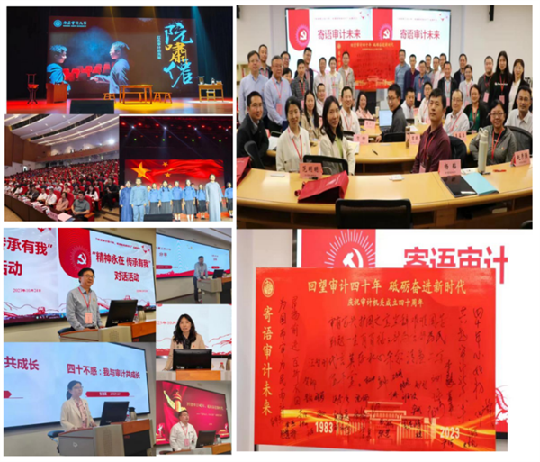 中共審計(jì)署黨校2023年秋季學(xué)期處級干部進(jìn)修班學(xué)員臨時(shí)黨支部開展“回望審計(jì)四十年,砥礪奮進(jìn)新時(shí)代”主題黨日活動。集中觀看南京審計(jì)大學(xué)原創(chuàng)話劇《紅色審計(jì)的先驅(qū)——阮嘯仙》,大家從臨危受命、紅都鐵算、與子家書、智斗蠹蟲四幕話劇中,“情景式”“沉浸式”地深入了解人民審計(jì)制度的奠基者阮嘯仙同志在革命年代的審計(jì)故事,被其“堅(jiān)韌卓絕為吾人本色,奮斗犧牲是我輩精神”的革命精神和紅色基因所打動。開展“精神永在,傳承有我”對話活動,支部老中青黨員、與審計(jì)事業(yè)同歲黨員結(jié)合自身和工作實(shí)際,暢談感受和體會。開展“寄語審計(jì)話未來”活動,學(xué)員們紛紛拿起手中的筆,用最深情的告白、最樸實(shí)的話語,在留言板上寫下自己對審計(jì)事業(yè)最美好的祝福。