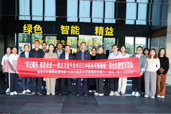 省審計(jì)廳教科處黨支部聯(lián)合江西中醫(yī)藥大學(xué)直屬機(jī)關(guān)黨支部開展黨日活動(dòng),參觀中醫(yī)藥文化館,走進(jìn)液體制劑智能車間,深刻感受中醫(yī)藥文化的深厚歷史底蘊(yùn)。